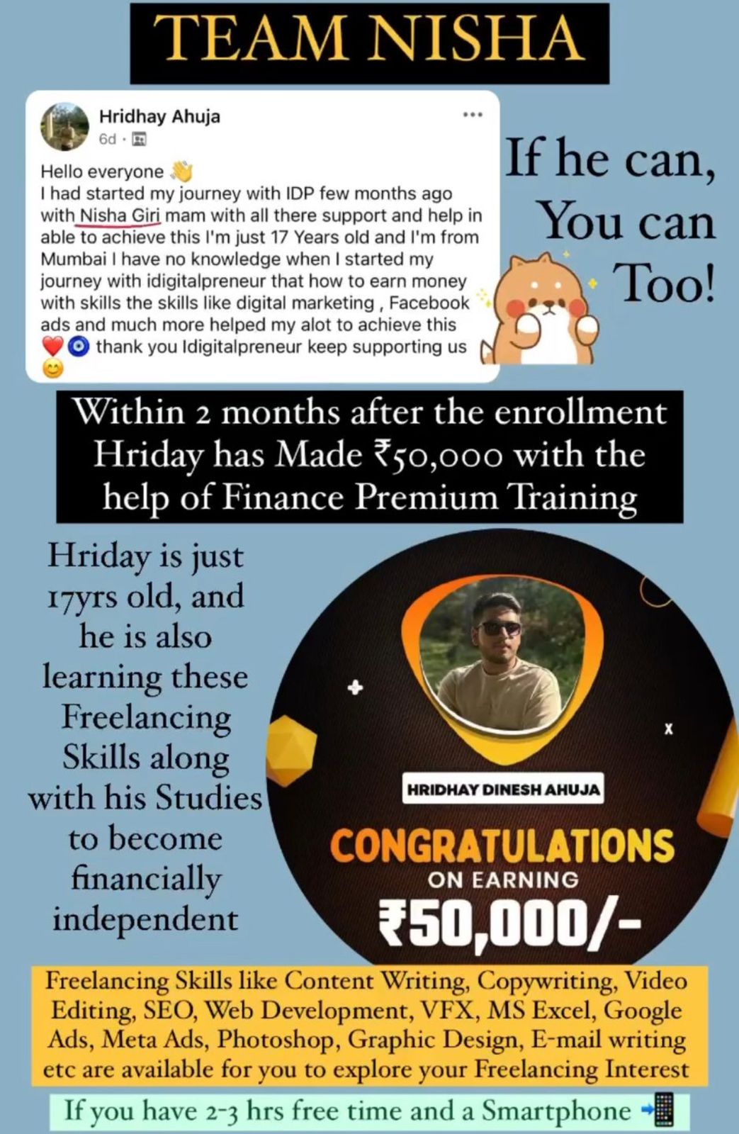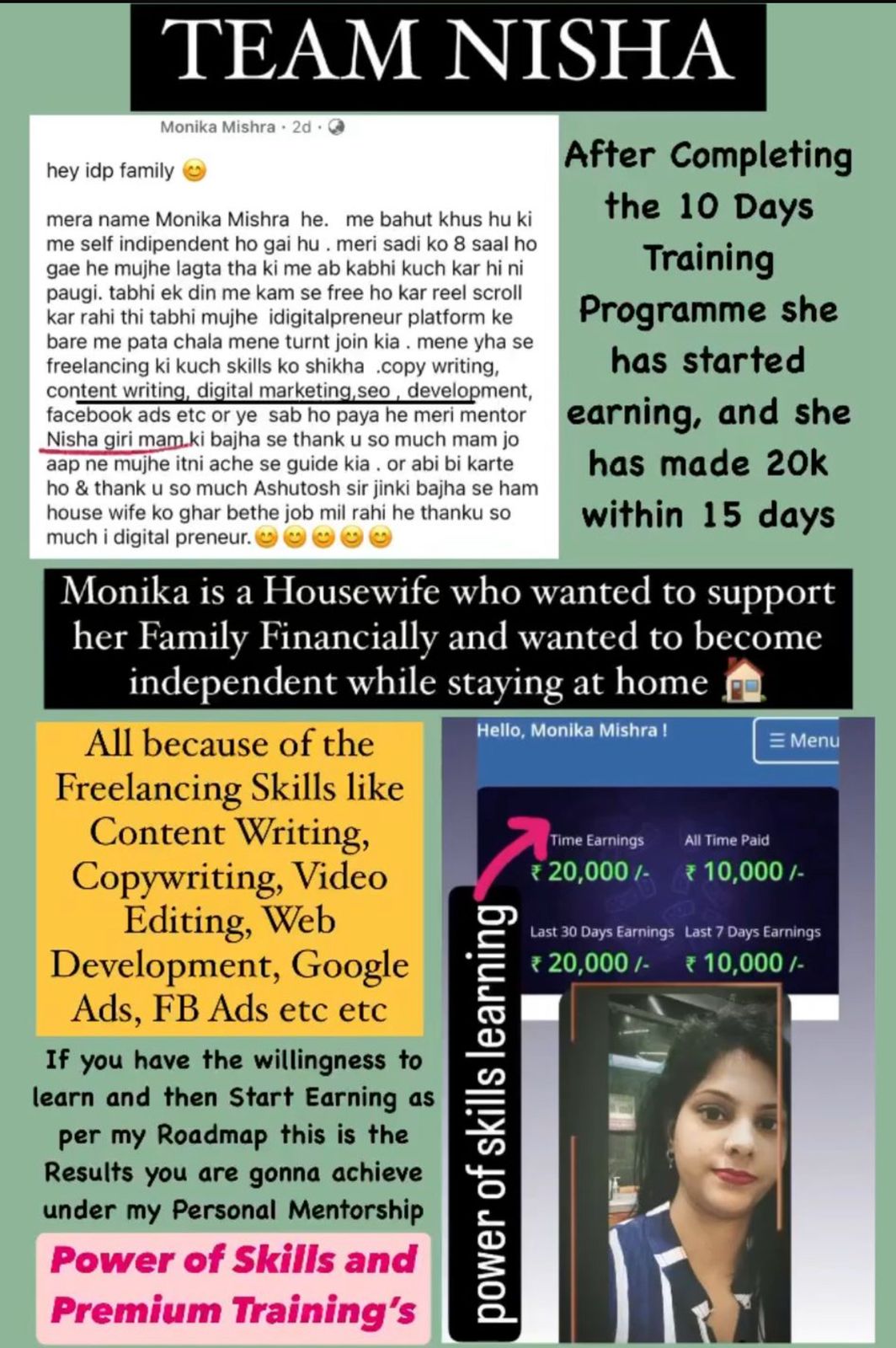 My name is Nisha Giri. At 24 years of age, I have made ₹ 27 Lakhs through freelancing in 1 year while working a full time job as an Air Hostess. I have achieved quite a few things in my life but helping my parents retire has been the best of them all.